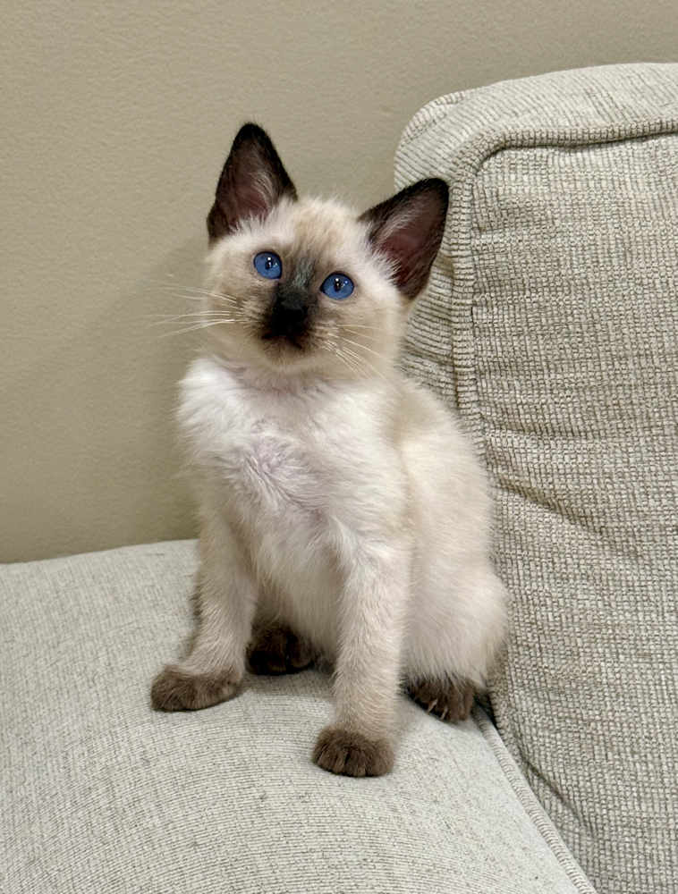 She is very laid back and watches before she leaps! She likes to observe things to see what they are all about! She is so sweet and loves to purr in your lap!
