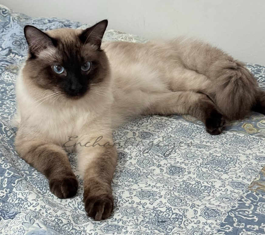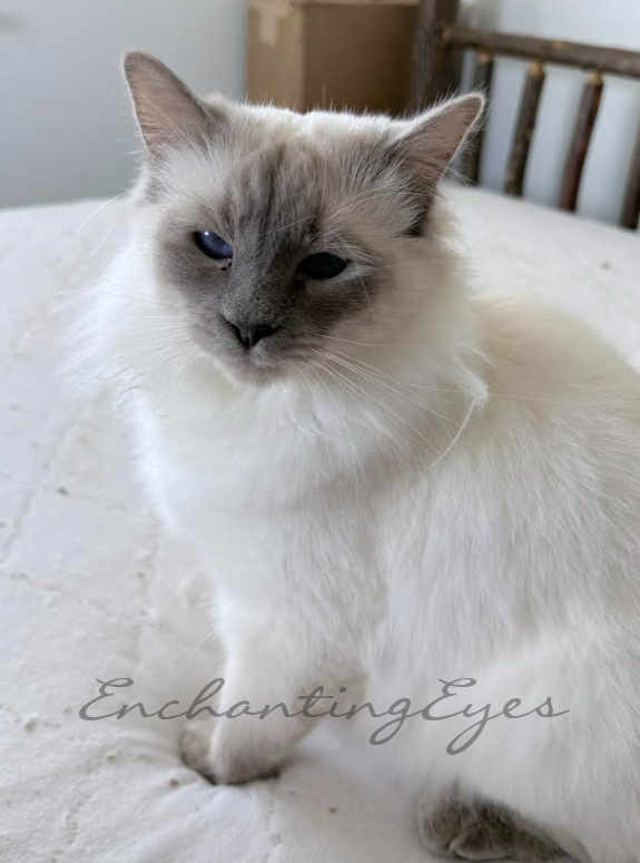 “Louie” is my beautiful Blue eyed boy. He is relaxing in his soft cuddly bed!